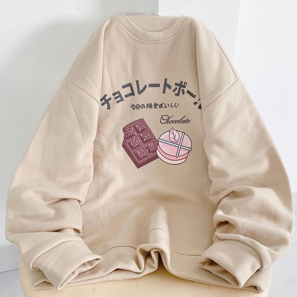 Beli Vallina Outfit Kanji Sweater Oversized Wanita Crewneck - Moca di sini