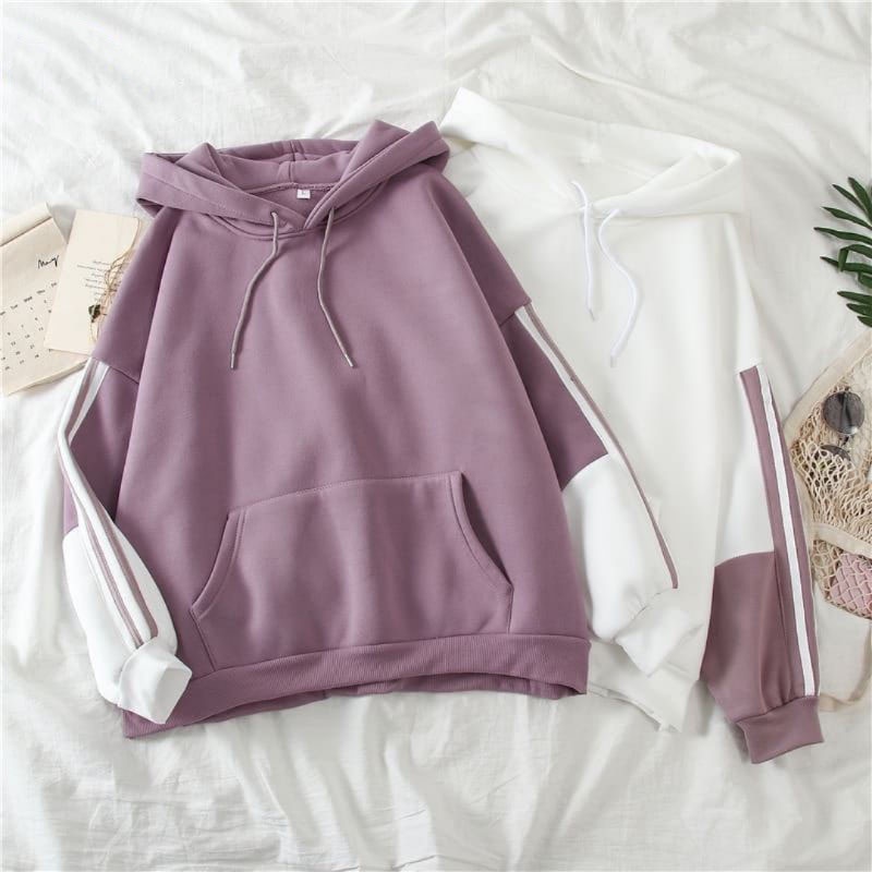 Vallina Zippy Stripe Hoodie Pullover Premium Sweat Fleece Tebal Sweater Wanita Korean Style dijual oleh toko Vallina Outfit Official Shop dengan lokasi KOTA BANDUNG.