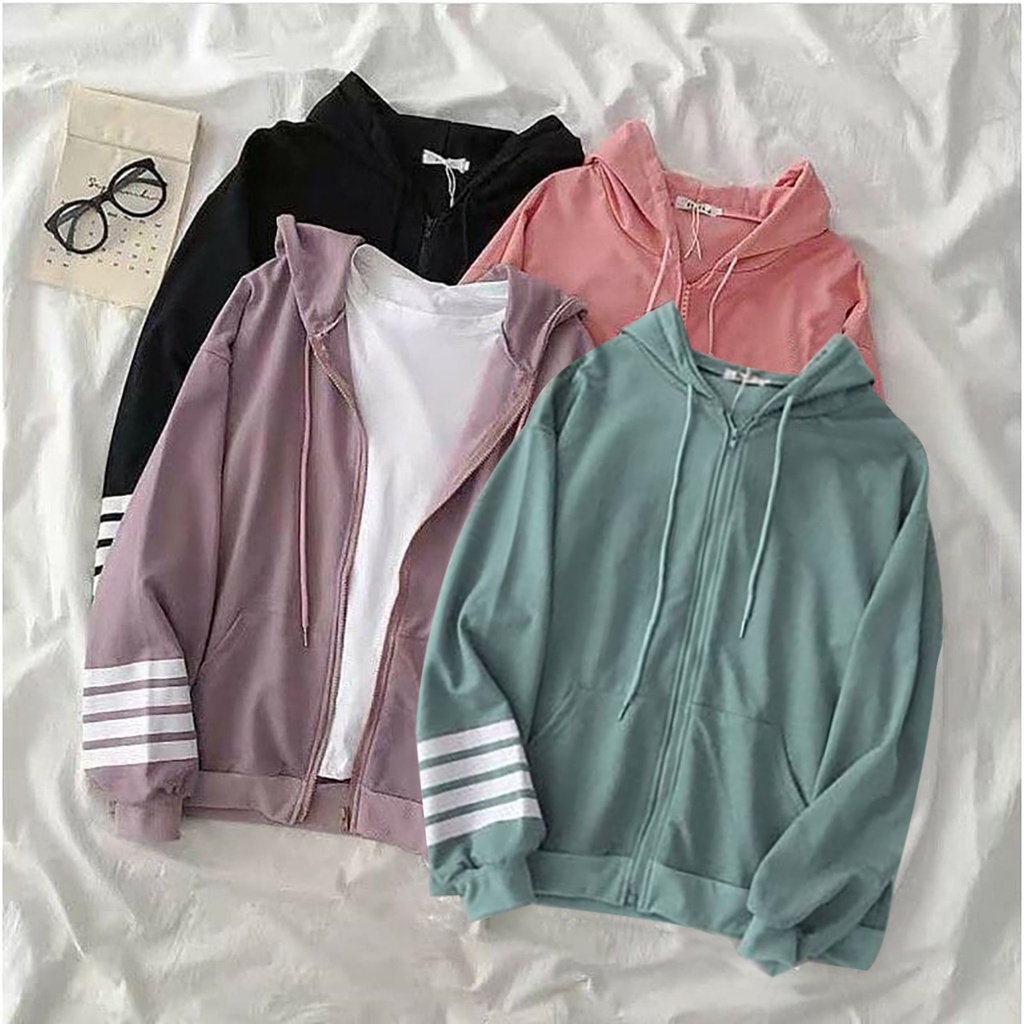 Vallina Zippy Stripe Hoodie Zipper Sweat Fleece Tebal Sweater Wanita Korean Style dijual oleh toko Vallina Outfit Official Shop yang berlokasi di KOTA BANDUNG.